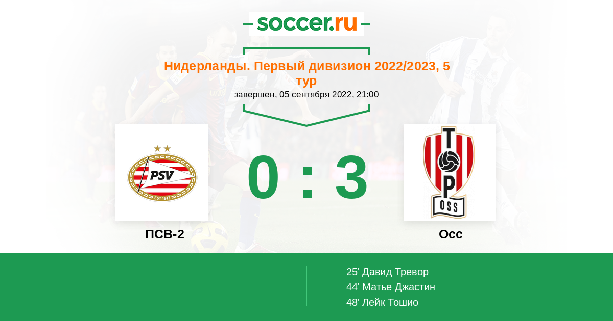 Протокол матча ПСВ-2 против Осс