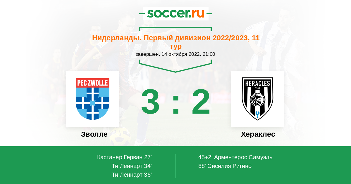 Протокол матча Зволле против Хераклес