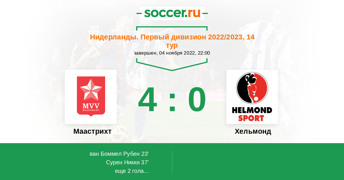 Протокол матча Маастрихт против Хельмонд
