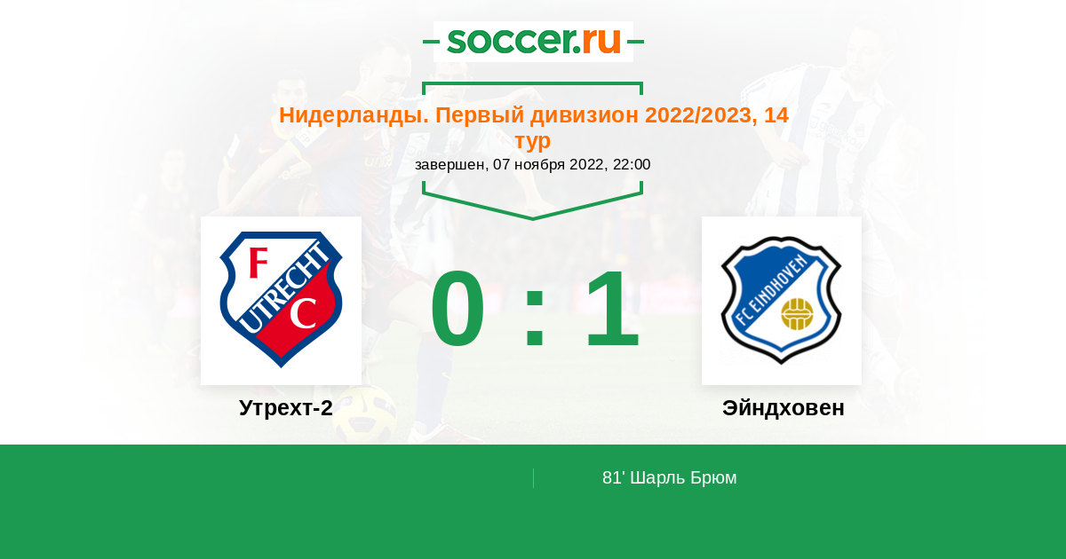 Протокол матча Утрехт-2 против Эйндховен