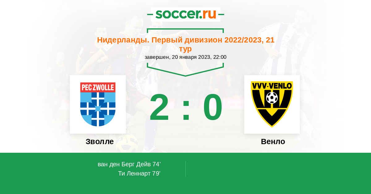 Протокол матча Зволле против Венло
