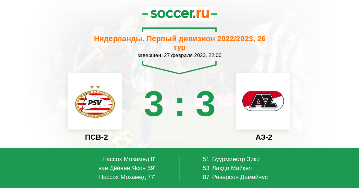 Протокол матча ПСВ-2 против АЗ-2