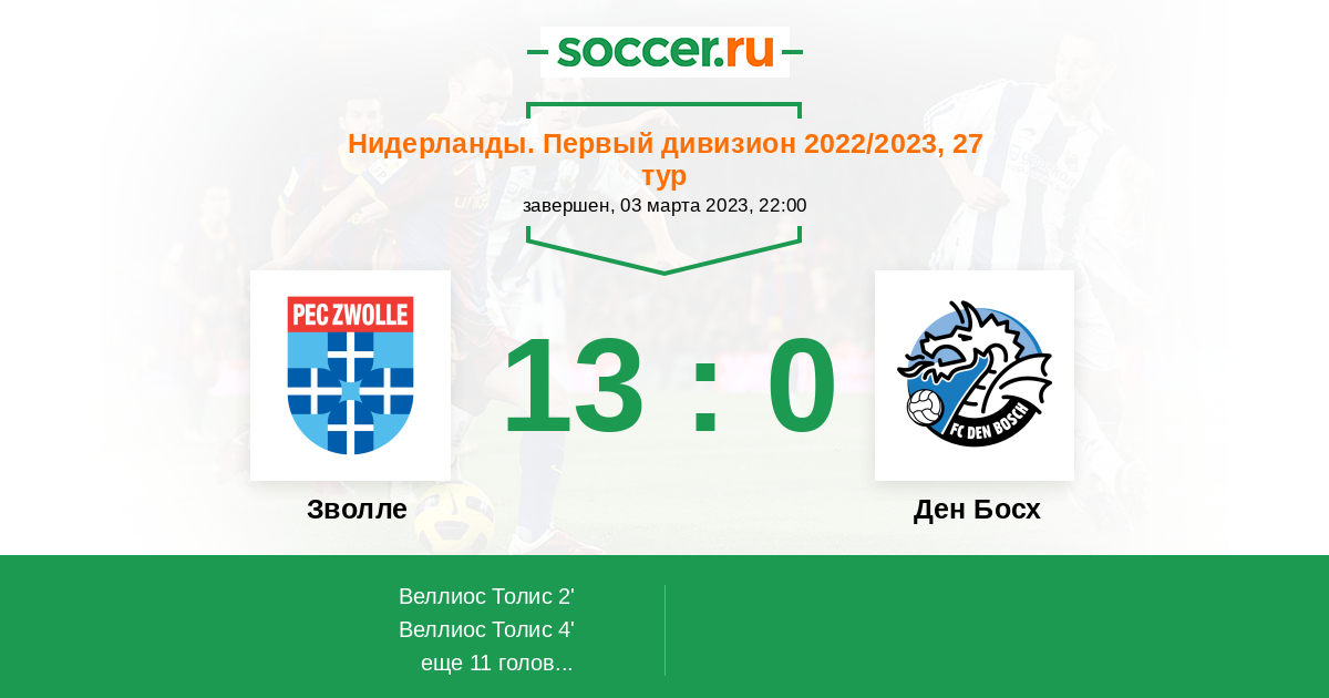 Протокол матча Зволле против Ден Босх