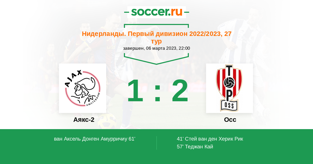 Протокол матча Аякс-2 против Осс