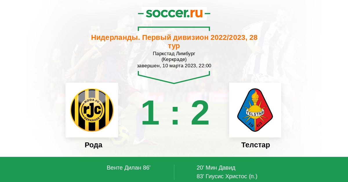Протокол матча Рода против Телстар