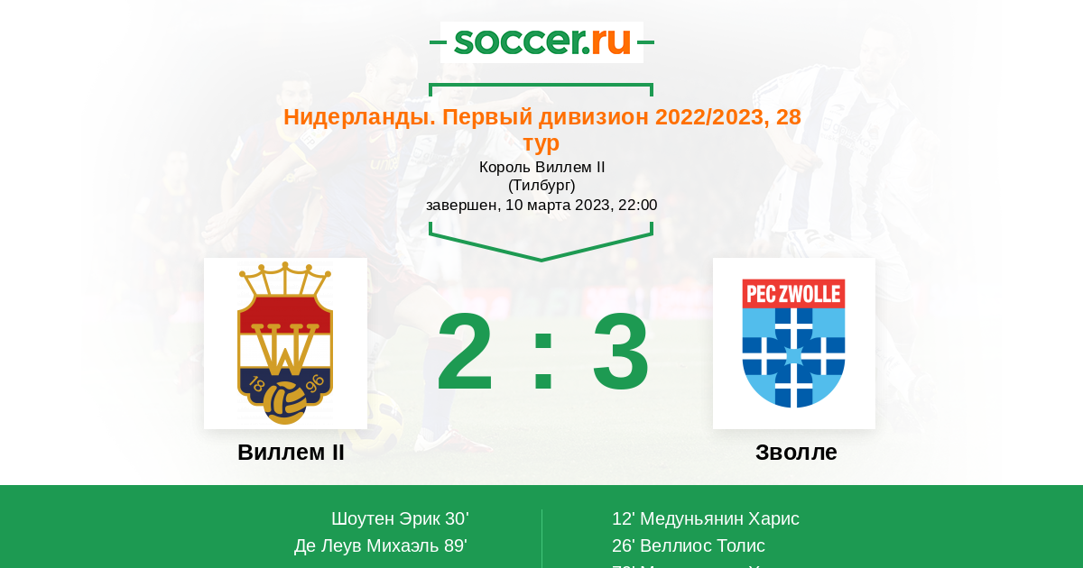 Протокол матча Виллем II против Зволле