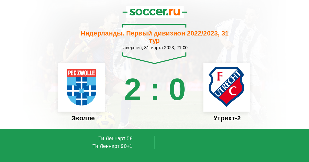 Протокол матча Зволле против Утрехт-2