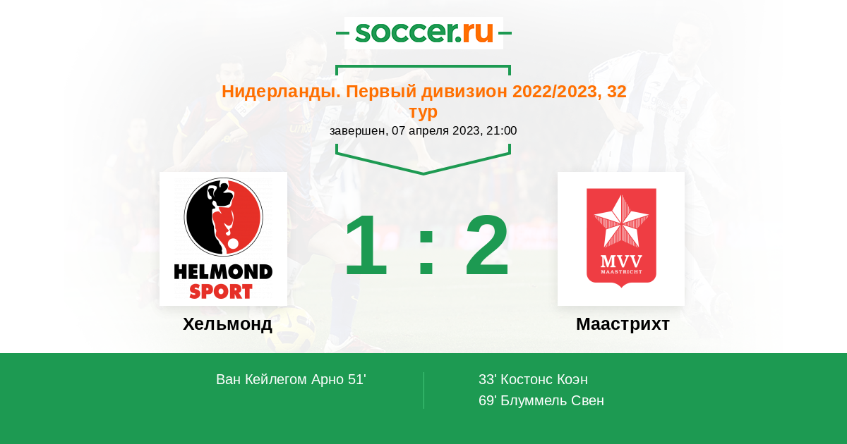 Протокол матча Хельмонд против Маастрихт