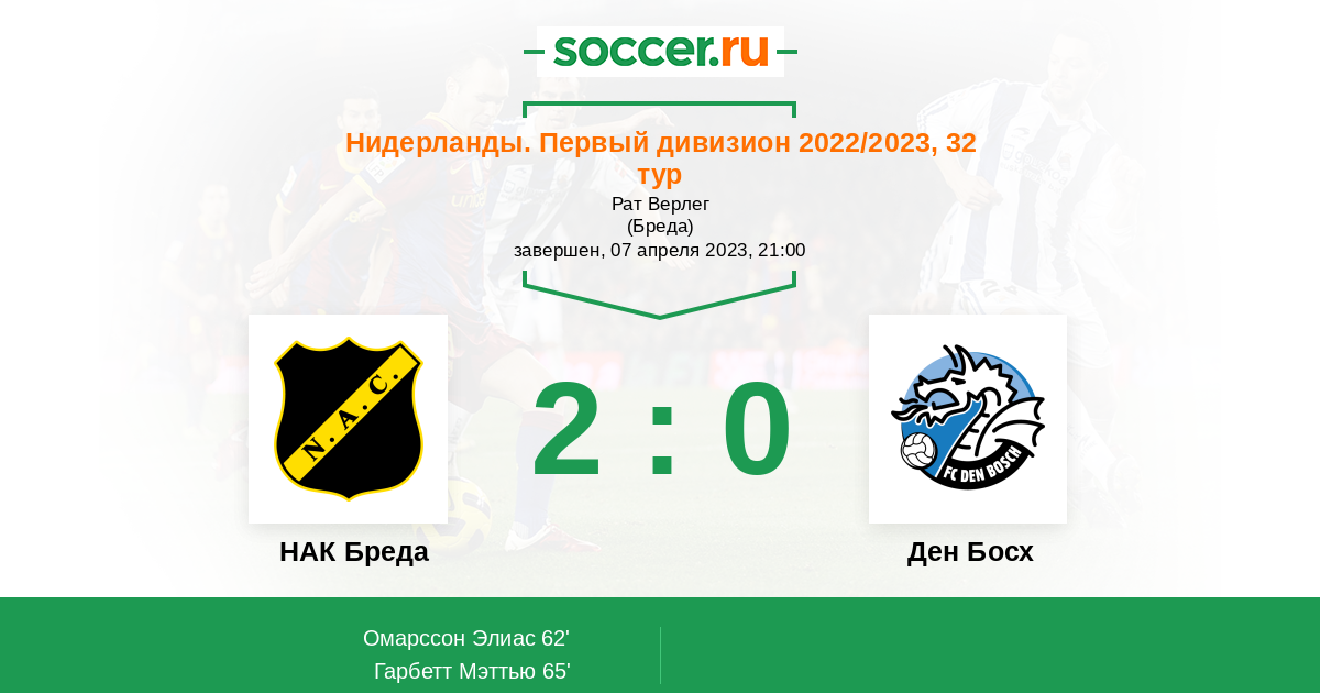 Протокол матча НАК Бреда против Ден Босх