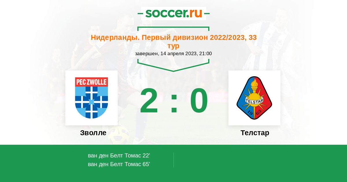 Протокол матча Зволле против Телстар