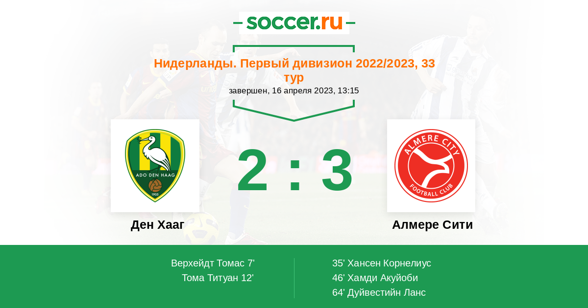 64' (2:3) Дуйвестийн Ланс (10) (Хансен Корнелиус (17))