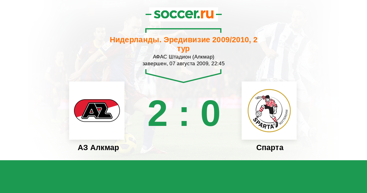 Нидерланды. Эредивизи 21.03.2010 Спарта Логотип футбольный клуб Спарта (Роттердам) 0:1 Логотип футбольный клуб АЗ Алкмар АЗ Алкмар