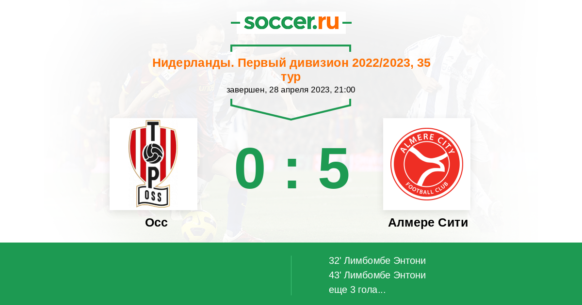 Протокол матча Осс против Алмере Сити