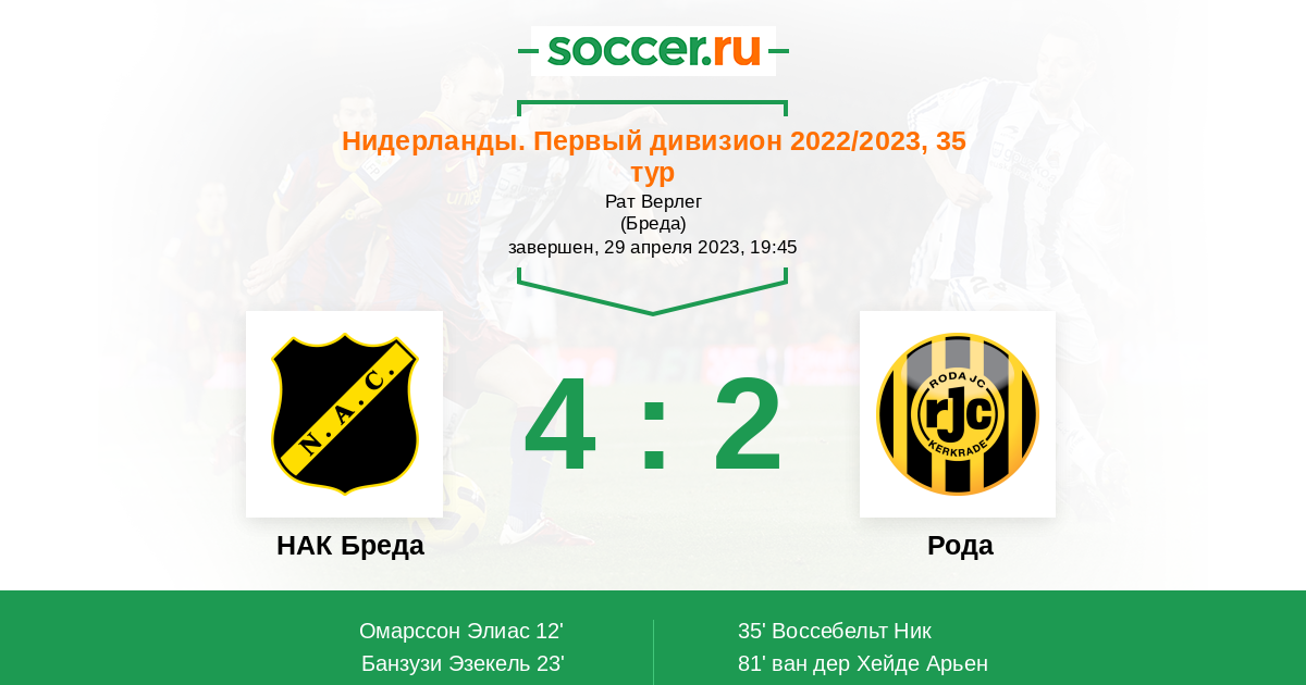 Протокол матча НАК Бреда против Рода
