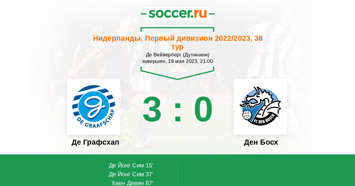 Протокол матча Де Графсхап против Ден Босх
