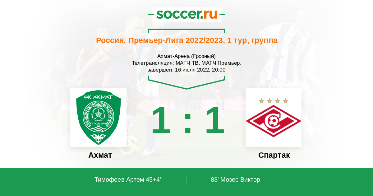 А вот Спартак лучше Ахмата даже в меньшинстве. Наиграли на гол точно!