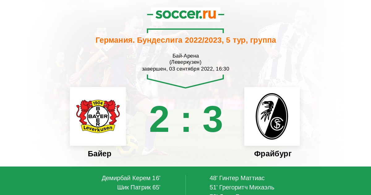 Я думаю что в этом противостоянии более чем явного фаворита на победу нет . У команды хозяев поля Байера совершенно ничего не получается в начале сезона, команда два матча у себя в родных стенах проиграла с разницей 1:5 . И вполне возможно что команда гостей Фрайбург сможет отобрать очки у такого Байера.