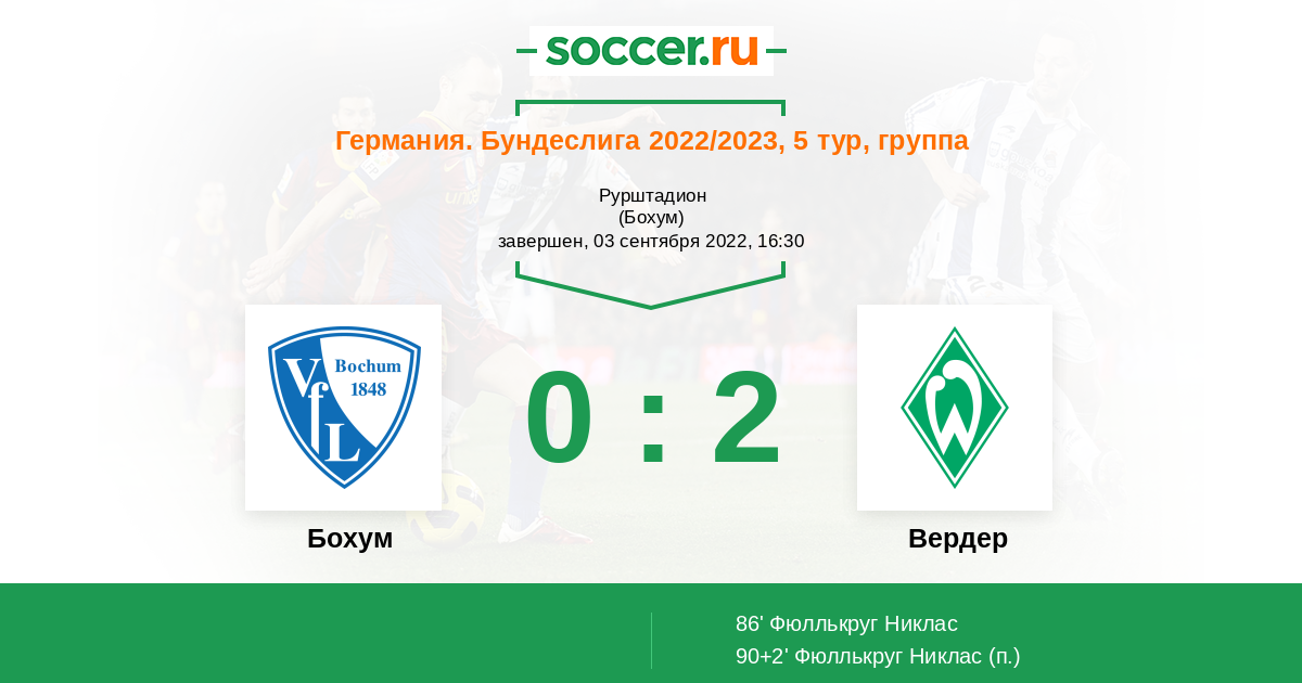 Протокол матча Бохум против Вердер