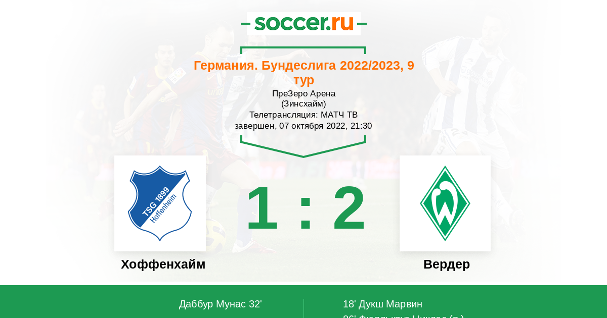 Протокол матча Хоффенхайм против Вердер