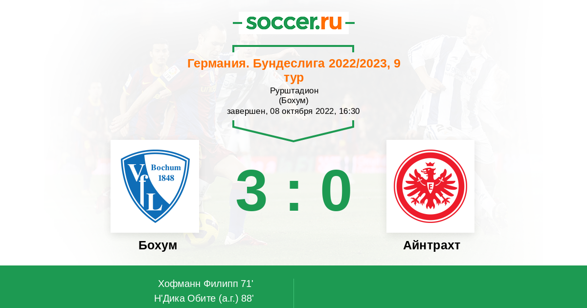Протокол матча Бохум против Айнтрахт