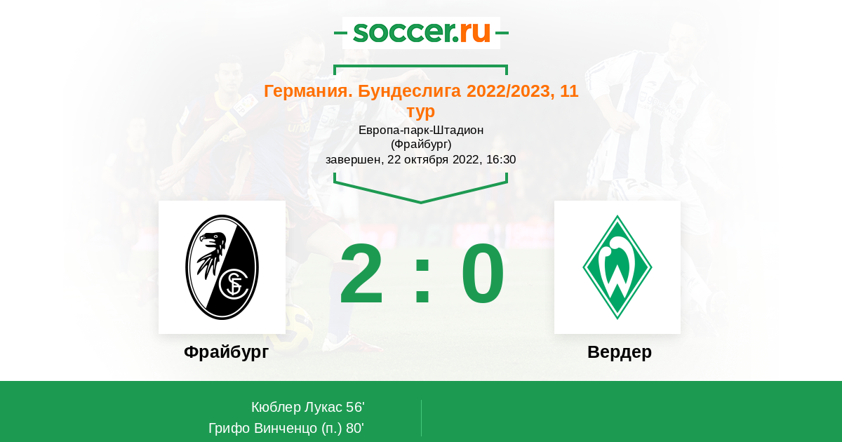 56' (1:0) Кюблер Лукас (17) (Грифо Винченцо (32))