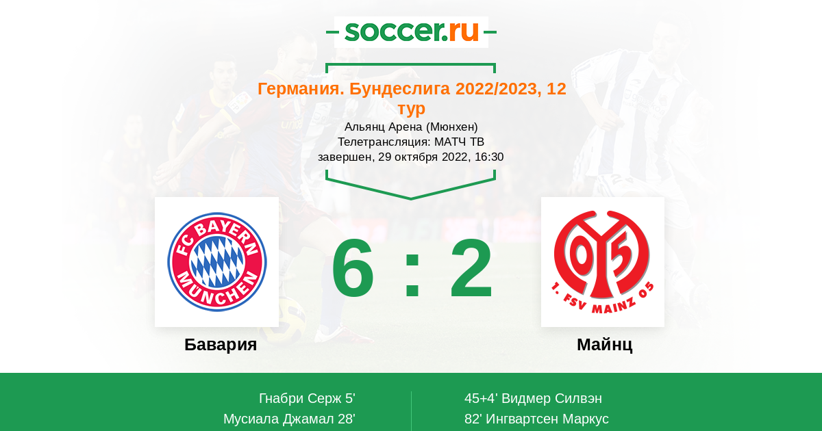 В предстоящем матче 12 - го тура немецкой Бундеслиги между командами Бавария Мюнхен и Майнц , более чем явным фаворитом на победу является команда Бавария Мюнхен , так как это другой уровень.