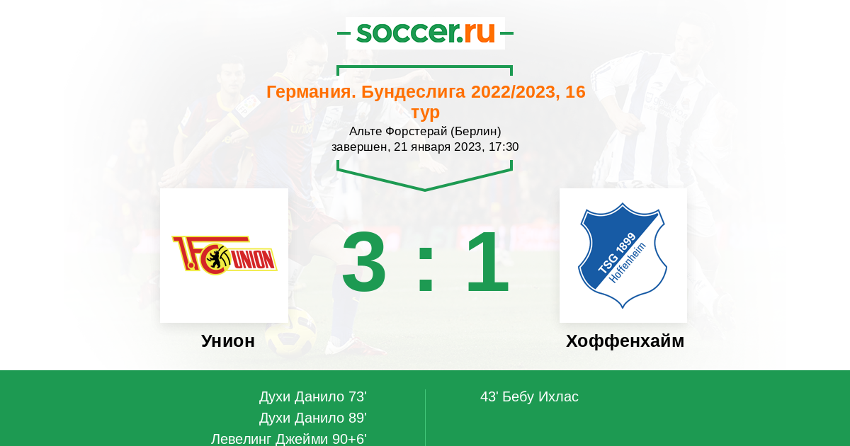 В этом матче между командами Унион и Хоффенхайм фаворитом является команда хозяев поля. Которые очень удачно начали сезон и находятся в верхней части турнирной таблицы. Могут составить конкуренцию в борьбе за попадание в четвёрку лучших этого сезона.