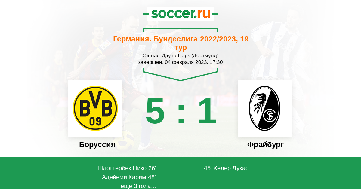 Протокол матча Боруссия против Фрайбург