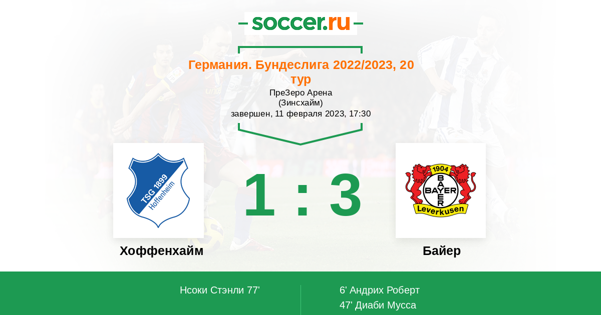 Протокол матча Хоффенхайм против Байер