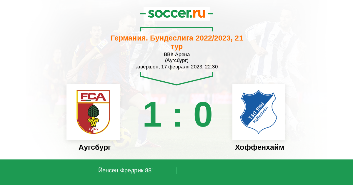 Протокол матча Аугсбург против Хоффенхайм
