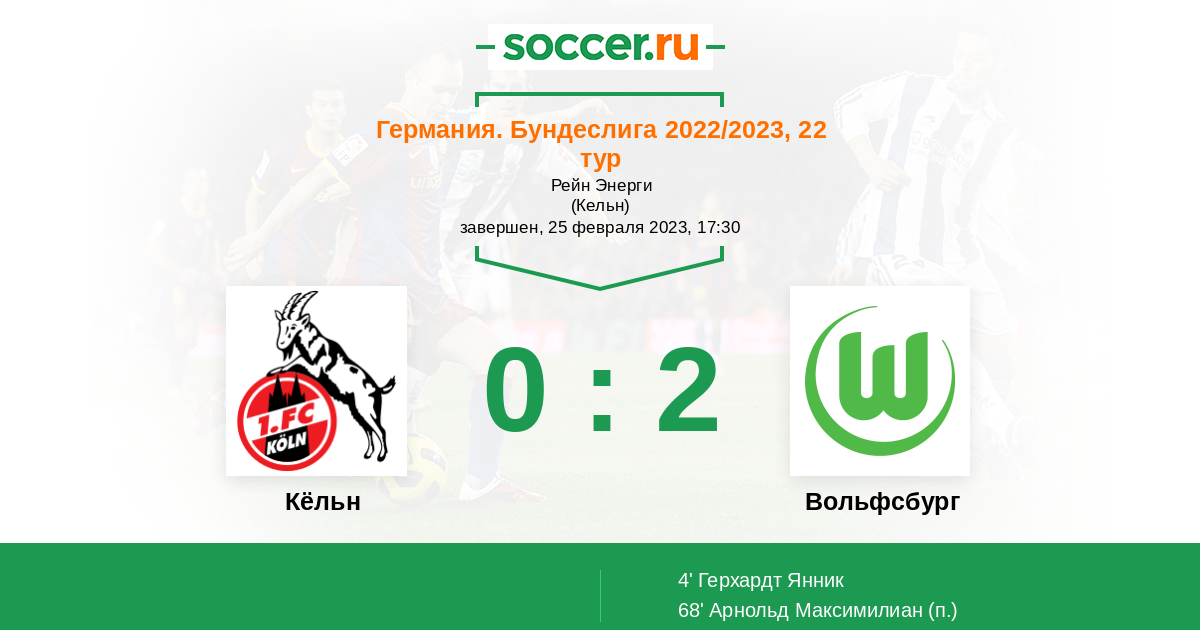 Протокол матча Кёльн против Вольфсбург