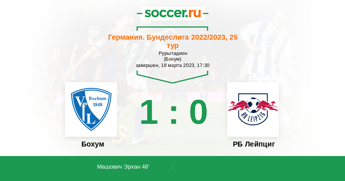 Протокол матча Бохум против РБ Лейпциг