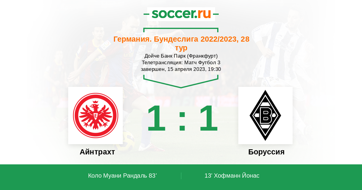 Протокол матча Айнтрахт против Боруссия