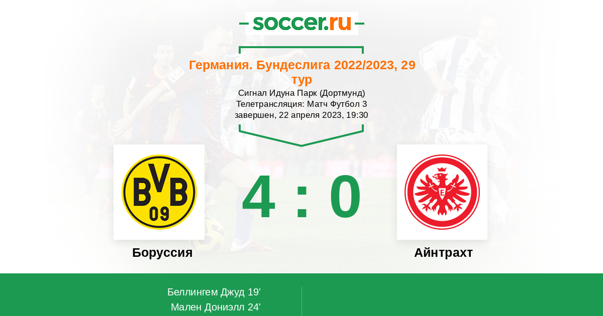 Протокол матча Боруссия против Айнтрахт