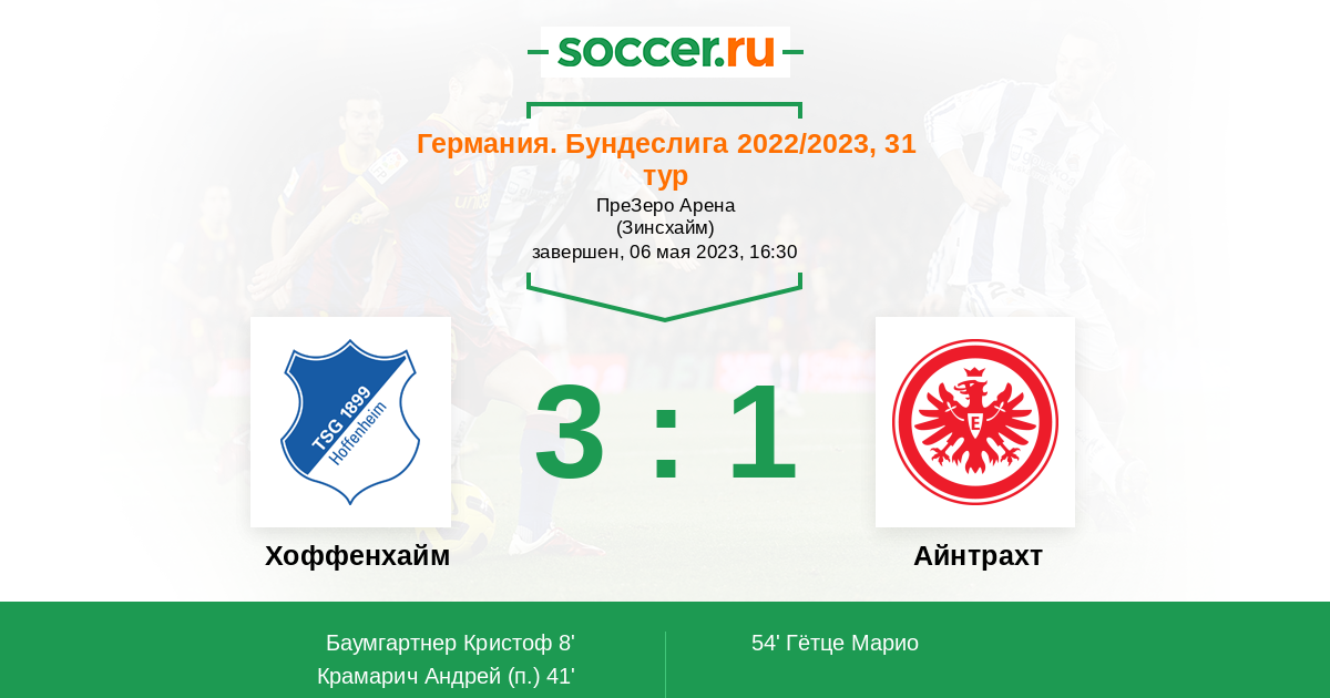 Протокол матча Хоффенхайм против Айнтрахт