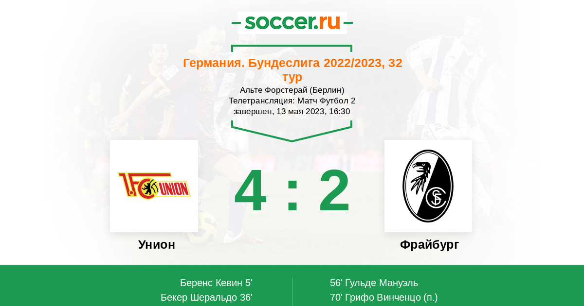 Протокол матча Унион против Фрайбург