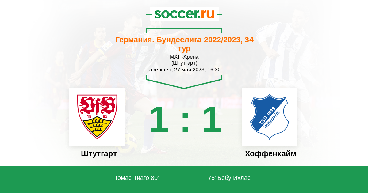 Протокол матча Штутгарт против Хоффенхайм