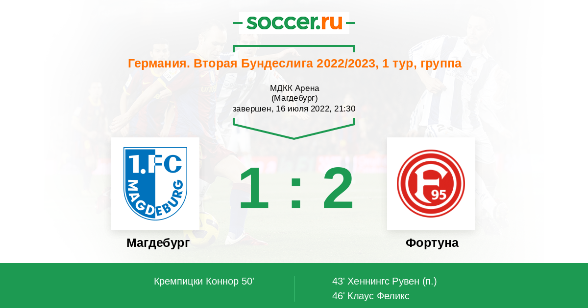 Протокол матча Магдебург против Фортуна