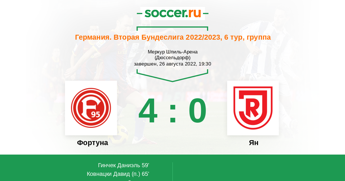 Протокол матча Фортуна против Ян