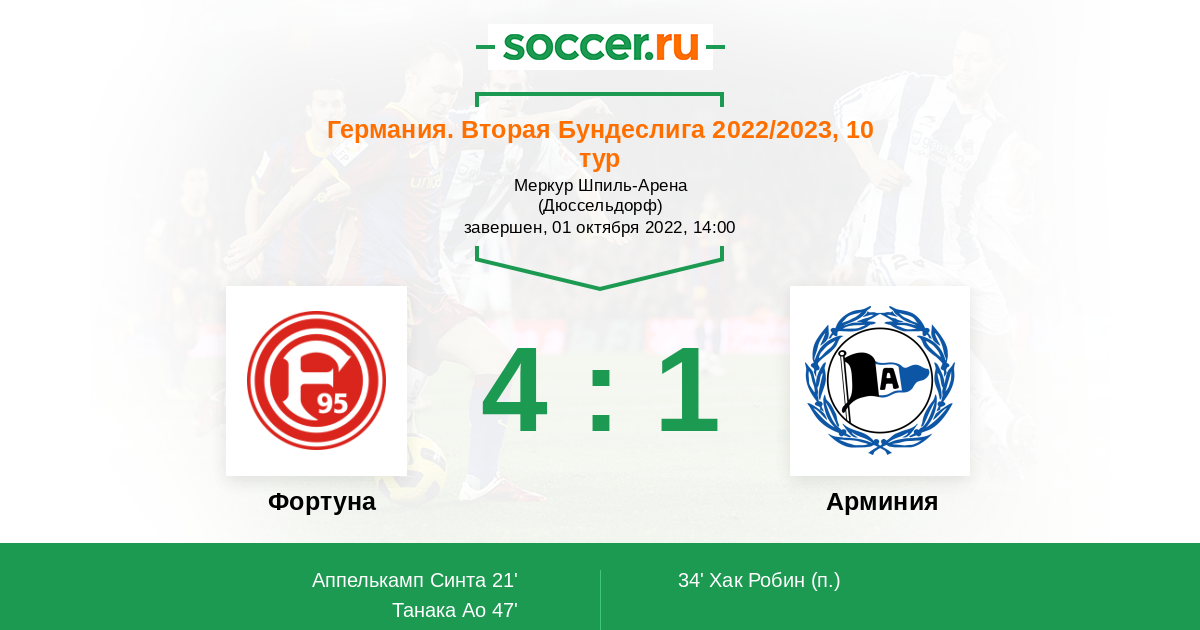 Протокол матча Фортуна против Арминия