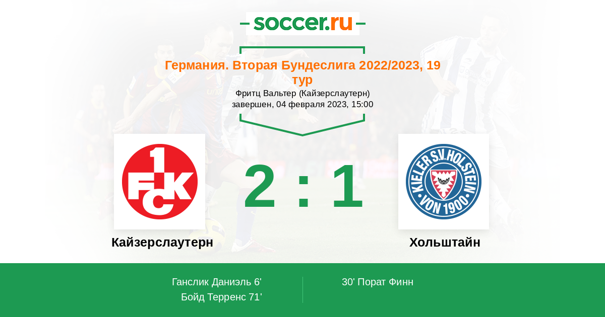 Протокол матча Кайзерслаутерн против Хольштайн