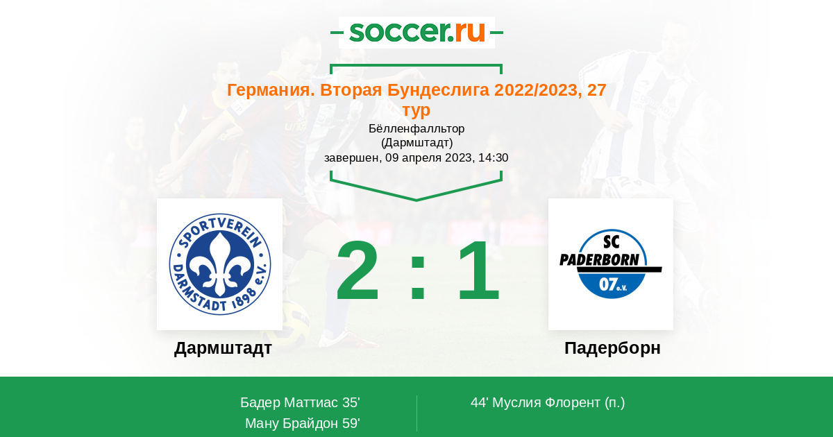 Протокол матча Дармштадт против Падерборн