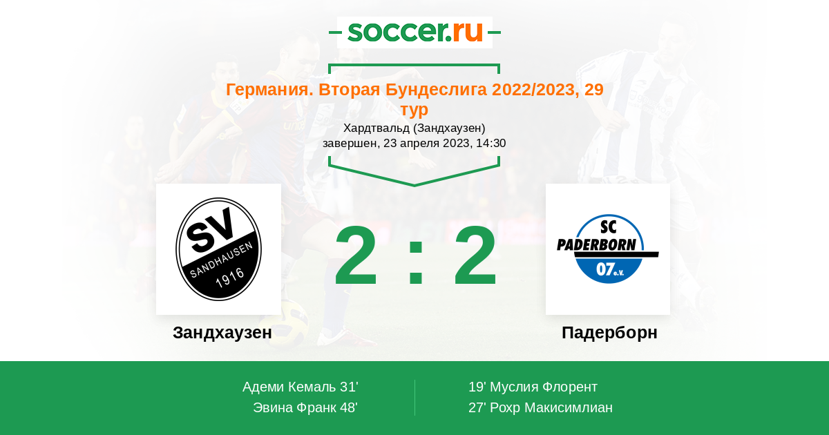 Протокол матча Зандхаузен против Падерборн