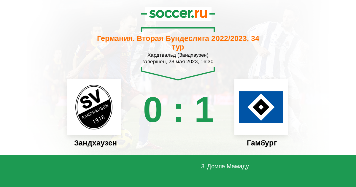 Протокол матча Зандхаузен против Гамбург