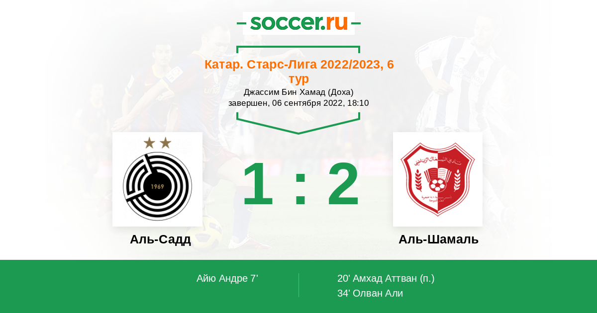 Протокол матча Аль-Садд против Аль-Шамаль