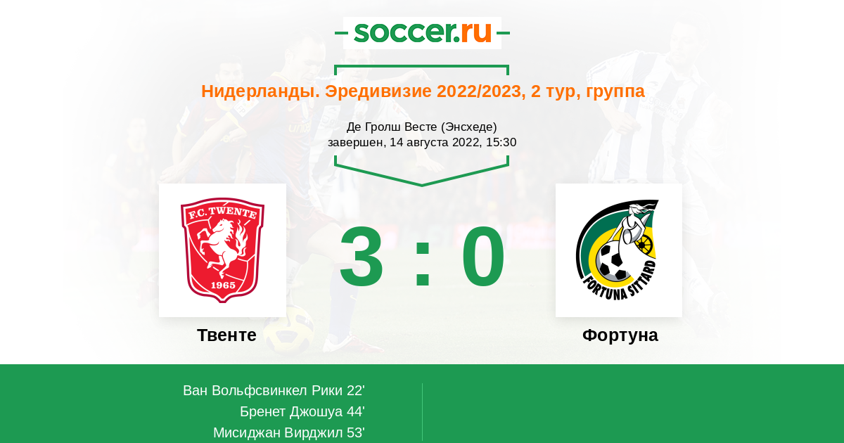 Протокол матча Твенте против Фортуна