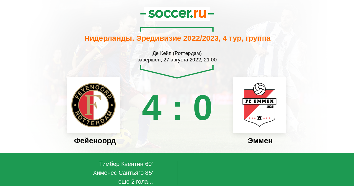 В этом матче между командами Фейеноорд и Эммен фаворитом является команда хозяев поля. Которые находятся в верхней части турнирной таблицы и при случае победы уверенно возглавят её. Прогноз победа хозяев и тотал больше 2,5 в этой игре. Удачи