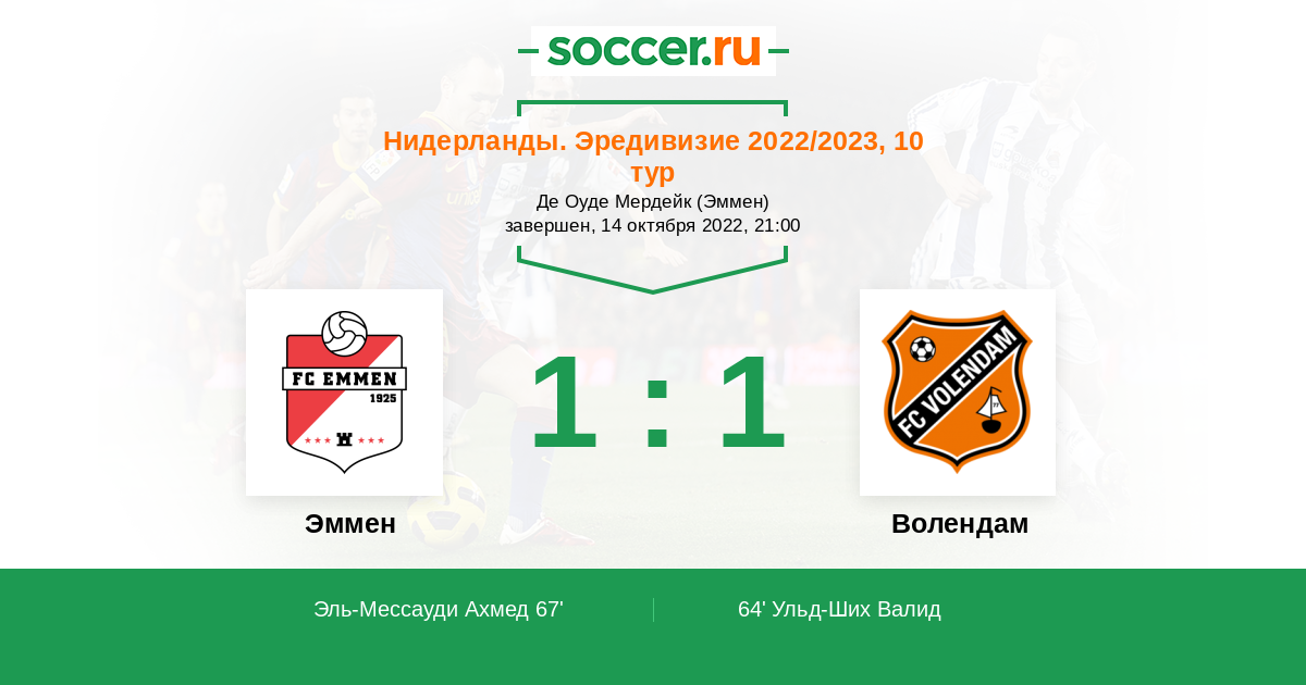 Протокол матча Эммен против Волендам