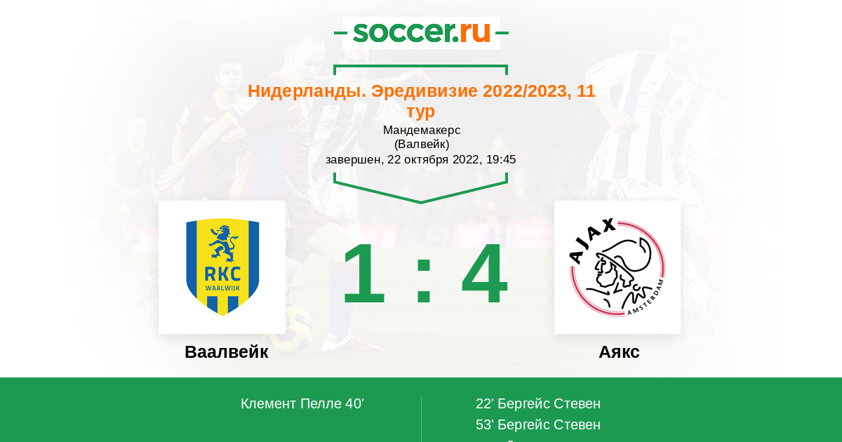 Протокол матча Ваалвейк против Аякс