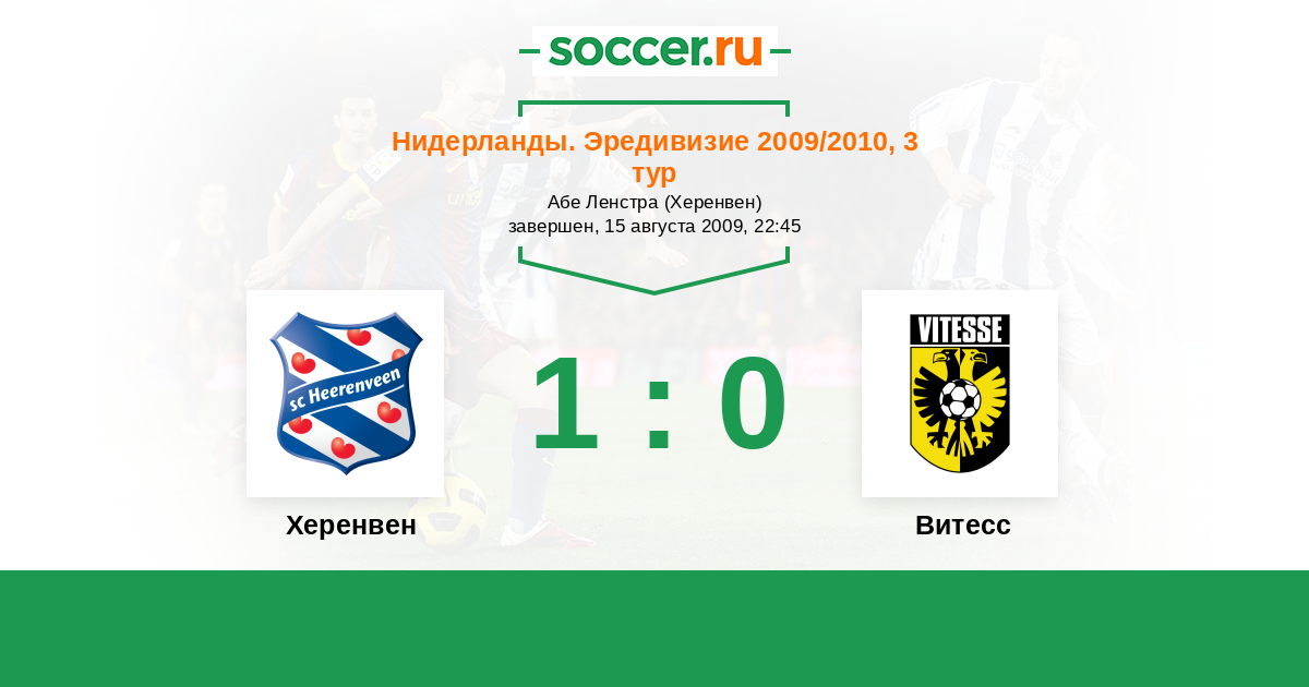 Нидерланды. Эредивизи 14.03.2010 Витесс Логотип футбольный клуб Витесс (Арнем) 0:1 Логотип футбольный клуб Херенвен Херенвен